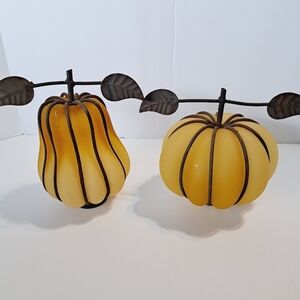 Vintage Frosted Blown Rod Iron Caged Fruit Votive Candle Holders