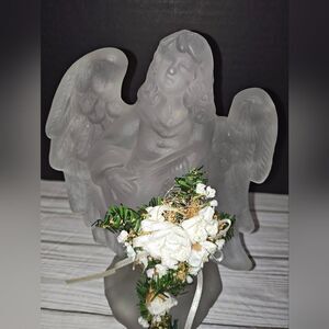Vintage Frosted Glass Angel Figurine Nightlight Christmas Holiday Decor No Light. Has some wear from age use and storage. Missing the light. See pictures. Sold as is.