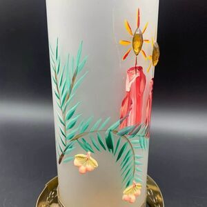 Vintage Frosted Glass Hurricane Candle Holder w/ Metal Base Hand Painted