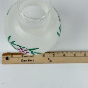 This vintage frosted glass lamp shade features a hand-painted floral design with vibrant green leaves and berry accents. The soft satin finish and flared base make it a perfect replacement shade for hurricane or oil lamps. Its charming hand-decorated look adds vintage style to any room. Gently used and in excellent condition with no cracks or chips. A lovely piece for antique lighting restoration or rustic home décor themes.
