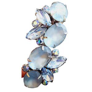 Details: This vintage clamper bracelet features frosted glass stones and rhinestones with aurora borealis sparkle. Absolutely beautiful piece!