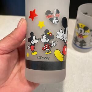 Vintage Frosted Mickey and Minnie mouse drinking glasses collectible Disney