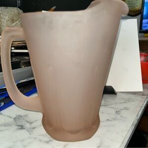 Beautiful Indiana Glass frosted pink pitcher. There are some scuffs on it, hence the price, and I don’t want to clean it wrong so I’m leaving it up to you.