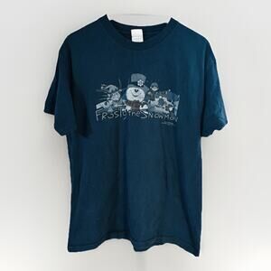 Vintage Frosty the Snowman T-Shirt Blue Graphic Tee Tennessee River Tag Size L