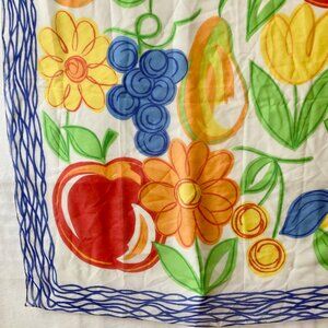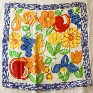 Vintage Fruit Flower Power Scarf Shawl Chiffon 34 X 34" Grapes Apple Tulips