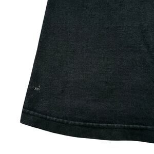 Previously loved shirt that has multiple flaws such as several tiny holes, small stains mostly on the bottom and general discoloration from normal wear, please see pictures