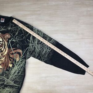 Vintage Fruit Of The Loom Sweatshirt Mens 2XL Tiger Graphic Crewneck AOP Grass