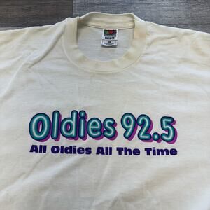 Vintage Fruit Of The Loom White Mens XL Oldies 92.5 Crewneck Tshirt