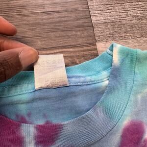 In good pre-owned condition, classic rainbow tie-dye shirt crew neck short sleeve cotton knit fabric colorful hippie groovy festival festivalcore streetwear psychedelic tee