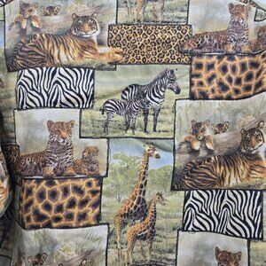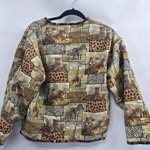 Vintage Fruit of the Loom Animal Print Safari Open Sweatshirt Cropped Large