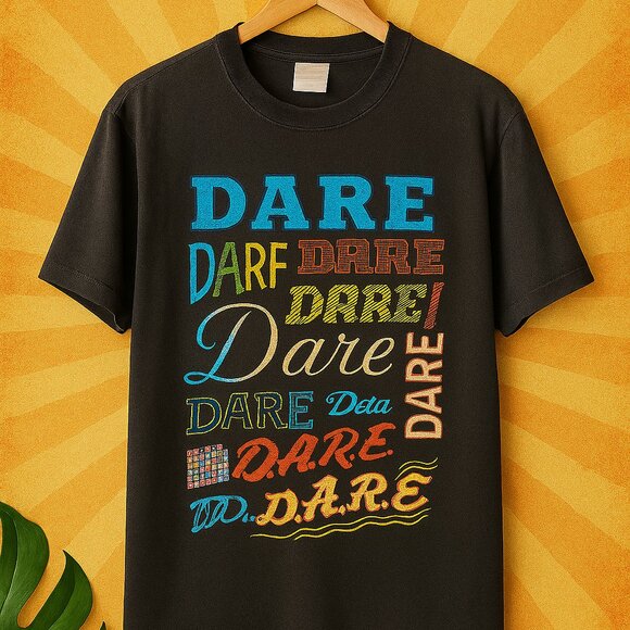 Throw it back in style with this original Fruit of the Loom black T-shirt featuring a multicolor D.A.R.E. graphic that screams retro cool. Bright, playful, and packed with nostalgic flair, it’s a must-have for collectors and streetwear lovers alike.