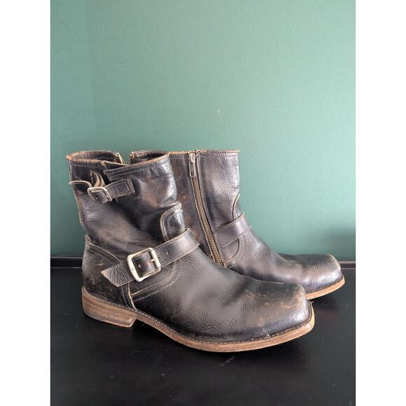 Vintage Frye Black Leather Ankle Zip Bucke Motorcycle Boots USA Men's 8 1/2D