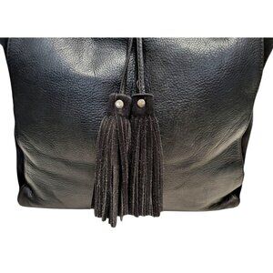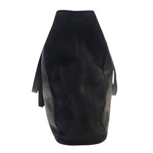 Elevate your style with this elegant leather and suede tote bag. The versatile black design and spacious interior make it ideal for daily use while exuding sophistication. The tassel detail adds a chic touch, making it a standout accessory. Durable materials ensure long-lasting quality and timeless appeal.