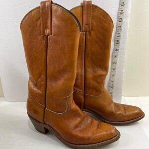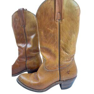 Vintage Frye Leather Cowboy Boots Tan Brown Western Style Womens Size 10.5D