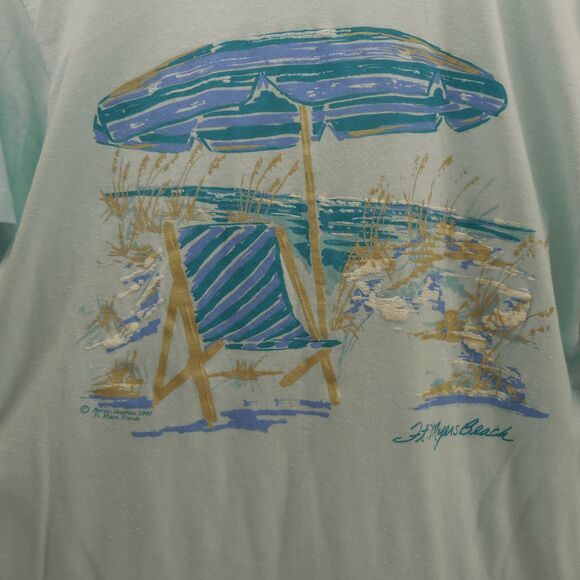 Vintage Ft Meyers Beach FL 1990 Beach Umbrella Chair Relaxed Shirt Size Large