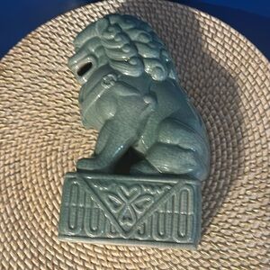 Vintage Fu Dog Ceramic Statuette with Celadon Green Crackle Finish 10.5”
