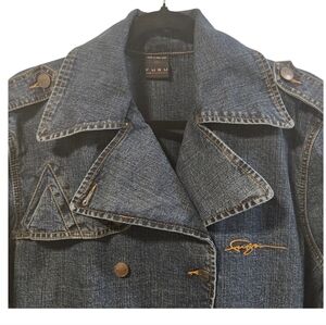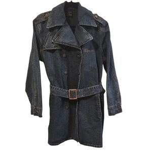 Vintage Fubu Denim Double Breasted Belt Trench Coat Size 2X