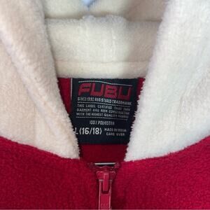 Vintage Fubu Fleeced Hooded Sweater Color:Red and cream multi Size:L Good condition no damage