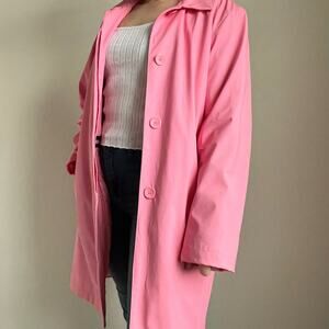 Vintage Fuda Bubblegum Pink Rain Coat - Size Medium - Trench length - a little heavier for colder weather - Great vintage condition - bottom button coming loose and some light staining throughout, see pics