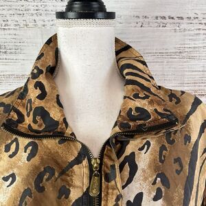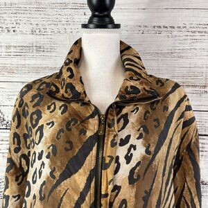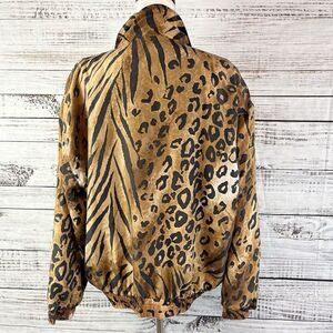 Vintage Fuda International Animal Print 100% Silk Windbreaker Jacket size Large