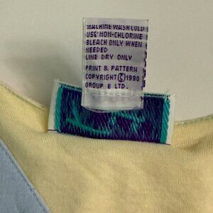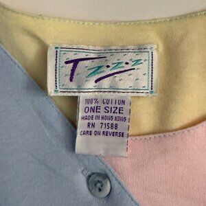 This 100% cotton nightgown is a vintage Tzzz full-length nightie featuring 3/4 sleeves and a vintage-inspired design in pink, blue, and yellow colors. With a pullover style and 3-button closure, this plus-size gown is machine washable for easy care. The tag reads One Size, but measurements indicate that it would fit up to a Woman's 2XL.