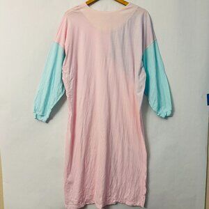 Vintage Full Length 100% Cotton Nightgown with 3/4 Sleeves Pink Blue Yellow