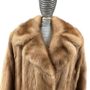 Vintage Full Length Pastel Mink Coat Double Breasted Notch Collar 70’s Classic