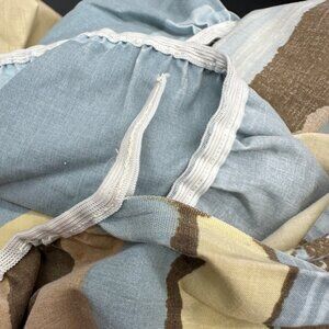 Vintage Full Size Fitted Sheet Lake Mountain Brown Blue 1970s Burlington USA