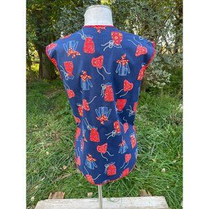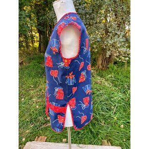 Vintage Full Smock Apron Hippy Bandana Print Red Blue