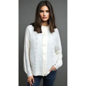 Vintage Fully Fashioned Cardigan Sweater Pointelle Buttons Ivory Size Large EUC