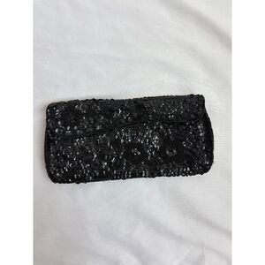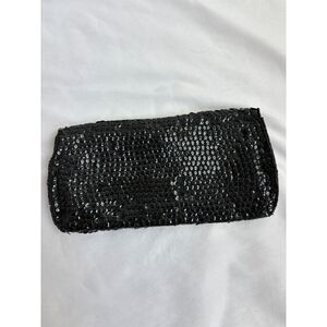 Vintage Fully Sequin Beaded Evening Clutch Bag Handheld Formal Event Black Tie