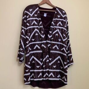 Vintage Fully Sequined Silk Brown White Aztec Design Made in India Surplice Tunic Dress in size XS