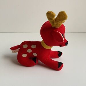 Vintage Fun World, Inc. Taiwan stuffed red reindeer white spots Christmas