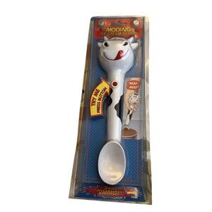 The Vintage Fun-damental Too Ltd Mooing Ice Cream Scoop is a collectible kitchen tool that features a unique whimsical design. With a black and white color scheme, this ice cream scoop is sure to add a touch of nostalgia to any kitchen collection. The unopened package indicates that it is in pristine condition, making it a desirable addition for collectors or anyone looking for a fun and functional kitchen gadget.