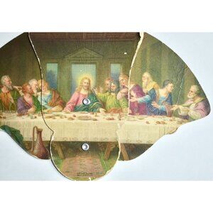 Vintage Funeral Home Last Supper Expandable Hand Fan Cardboard Paper