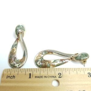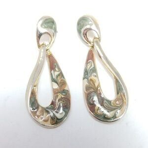 Vintage Funky Door Knocker Style Dangle Post Earrings, Gold Tone Enamel Estate