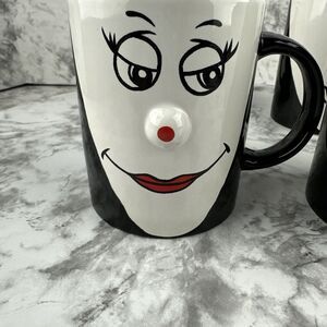 Vintage Funny Face 3D Red Nose Coffee Mug Cup Set of 4 Black White