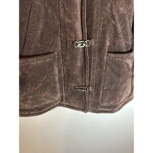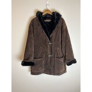 Vintage Fur Lined Faux Suede Penny Lane Fireman Clasp Coat Sz XL Brown
