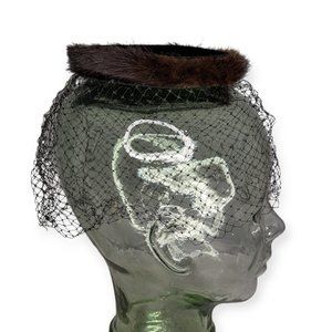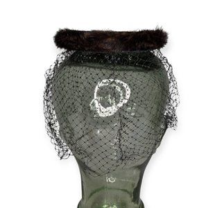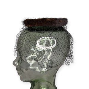 Vintage fur w/ net veil and rhinestone accent fascinator.