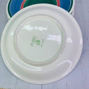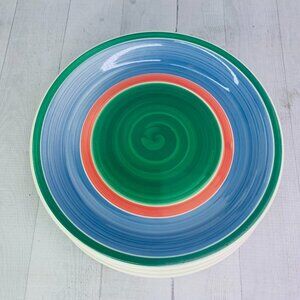 Vintage Furio Green Center Circle Pink Blue Italy Stoneware Dinner Plates Set 4