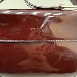 Vintage Furla Patent Leather Shoulder Bag Burgundy Red Purse Made in Italy