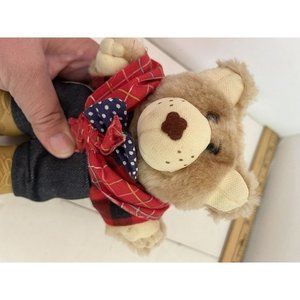 Vintage Furskins Xavier Roberts Plush Teddy Bear With Overalls 7" Toy