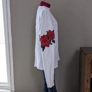 🌹Vintage Furst of a Kind | White Thermal Long Sleeve Embroidered Rose Applique
