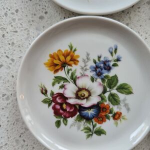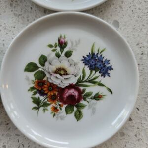 Vintage Furstenberg Porcelain 4” Floral Trinket Plate Coasters 6 Pcs W Germany