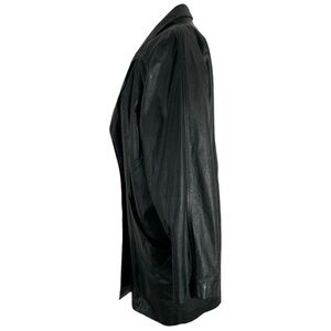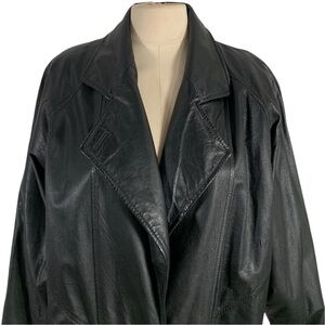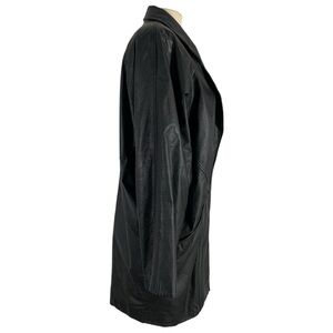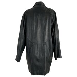 Features: This is a classic 80's 90's darkwave goth style throw back jacket. 100% genuine leather outer. Lined inner. Oversized. Mid length. Dolman sleeves. Notch Lapel collar. Pockets. Single button closure.