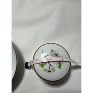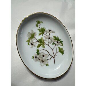 This elegant porcelain set features a delicate dogwood design, enhancing any decor. Ideal for organizing small items or adding a touch of vintage charm.