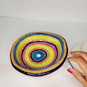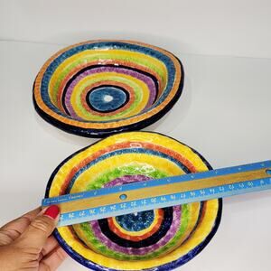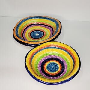 Vintage G. Venzo Italian Pottery Rainbow Asymmetrical Bowls 8½ & 7" Nesting (2)