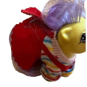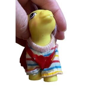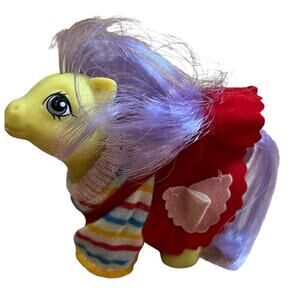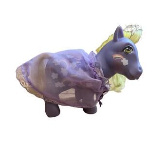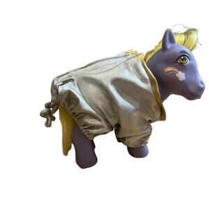 This lot includes a variety of accessories for My Little Ponies. The set features vintage items from the 1980s, including two matching jumpers for smaller ponies, a see through purple cape, an astronaut outfit, a bridle, a baby necklace and a comb, all designed for My Little Pony figures. The items are made from a mix of cloth and plastic. These original accessories are perfect for fans of the franchise who want to add some vintage pieces to their collection. These are rare fun pieces! ( ponies are not included. They are just modeling!)