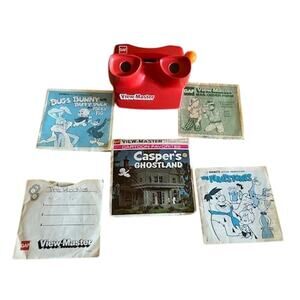 Vintage GAF View-Master Bundle – Red Viewer + 4 Reel Sets (Looney Tunes, Casper’s Ghostland, The Flintstones, The Rookies)