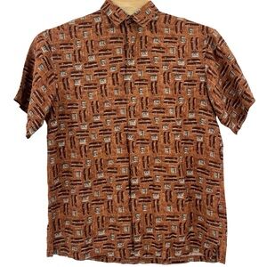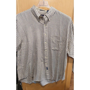 Very good condition vintage rugby shirt. Long sleeve. 4 button front. Navy, burgundy, and yellow. Made in the USA